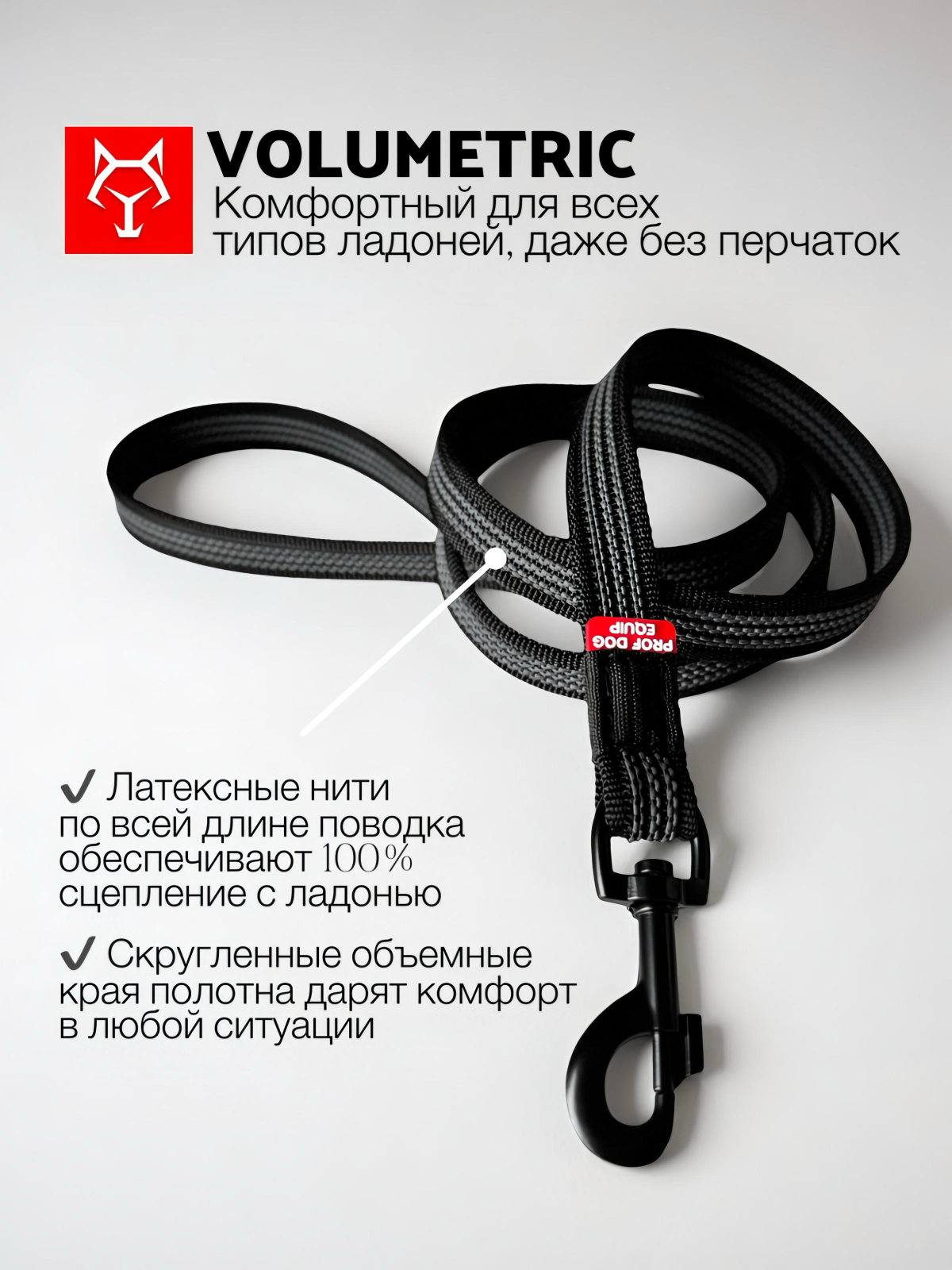 Широкая версия VOLUMETRIC с шириной полотна - 25 миллиметров создана для тех, кто любит максимально ощущать поводок в ладонях. Подойдет для ежедневных прогулок и работы в защитном разделе или на других тренировках, где особенно важна бОльшая площадь соприкосновения, чтобы эффективно и комфортно удерживать собаку. Широкий поводок визуально солидно смотрится на собаках крупных пород и гармонично дополняет образ, если на собаке широкий ошейник.